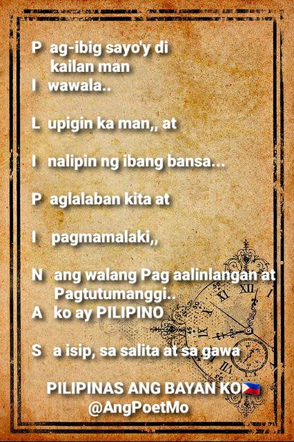 “Wag nating pag-damutan ang bansang,, kailanman ay di nag damot sa atin”mahalin at ipagmalaki,, iwagay-way ang Bandila, ipakita sa sa lahat ng Bansa”